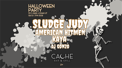 We are excited to announce the One and Only CACHE HALLOWEEN BASH featuring Utah's best Super Group SLUDGE JUDY with AMERICAN HITMEN, and local singer/songwriter KAYAMUSIC. This spooktacular show promises madness, chaos, and good times to be had by all. We encourage (not require) everyone to dress up for the occasion, but we will be having a fun costume contest during the evening for Best Couple, Best Male, and Best Female. Be prepared for a night to remember.